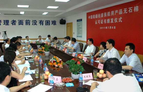 江蘇省經(jīng)信委副主任秦雁、溧陽市副市長蔡金龍分別在頒證儀式上發(fā)表致辭,他們對上上電纜獲得首張無石棉認可證書表示祝賀,并希望上上電纜要為其他船舶配套企業(yè)樹立一個好的榜樣與標桿,為江蘇省船舶配套企業(yè)積極應對國際新標準起到引領作用。同時,他們還希望CCS的江蘇分社進一步加大指導和服務力度,引領更多的企業(yè)走上規(guī)范化的先進制造業(yè)之路。