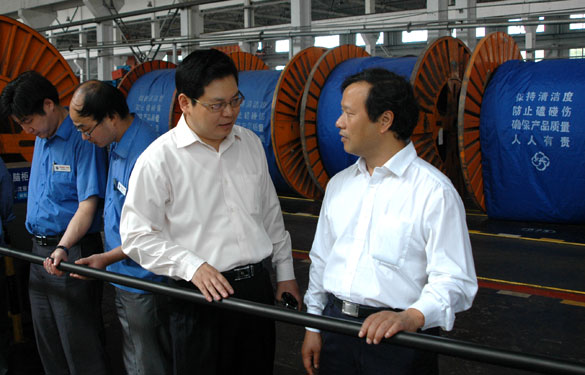 考察團現場聽取了上上集團關于公司概況、體系認證、主要產品的生產狀況、生產工藝、生產與檢測設備、技術研發(fā),以及銷售業(yè)績等狀況的介紹。同時,中海油也介紹了有關電纜的需求及技術要求,上上集團與考察團各成員進行了友好的洽談,并相互交換了意見。