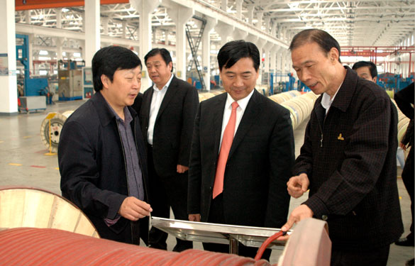 3月29日,南陽市委常委、鄧州市委書記姚龍其率領(lǐng)鄧州市黨政代表團一行來江蘇上上電纜集團參觀考察。溧陽市委書記盛建良陪同考察。集團董事長、總經(jīng)理丁山華,常務(wù)副總經(jīng)理丁志鴻、副總經(jīng)理滕峰等陪同姚書記一行參觀了西廠區(qū)特種電纜生產(chǎn)基地。