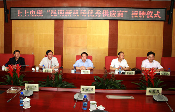 7月10日,昆明新機場建設(shè)指揮部召開優(yōu)秀供應商授牌大會,昆明新機場建設(shè)指揮部指揮長吳凡、副指揮長姜良閩、上上集團董事長、總經(jīng)理丁山華、副總經(jīng)理高勤凱等領(lǐng)導出席會議。會上,昆明新機場建設(shè)指揮部授予江蘇上上電纜集團優(yōu)秀供應商獎牌,對上上集團在昆明新機場建設(shè)中所作出的貢獻表示感謝。