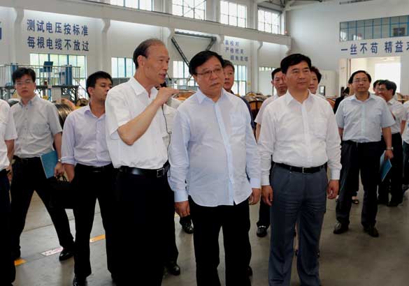 6月7日,中央第三巡回督導(dǎo)組組長、全國人大常委、環(huán)境與資源保護(hù)委員會主任委員、甘肅省委原書記、人大常委會原主任陸浩一行親臨江蘇上上電纜集團(tuán)調(diào)研黨的群眾路線教育實(shí)踐活動落實(shí)情況。江蘇省、常州市、溧陽市相關(guān)領(lǐng)導(dǎo)陪同。集團(tuán)董事長、總經(jīng)理丁山華、常務(wù)副總經(jīng)理丁志鴻等公司高層領(lǐng)導(dǎo)進(jìn)行了熱情接待,并全程陪同督導(dǎo)組實(shí)地調(diào)研。