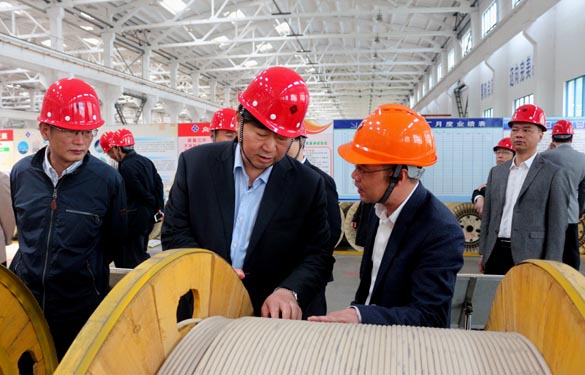 2016年4月21日,常州市副市長李小平、市政府副秘書長周慶一行在溧陽市委書記蔣鋒等領導陪同下來江蘇上上電纜集團考察。集團總經(jīng)理丁志鴻陪同李市長、周秘書長一行參觀了西廠區(qū)生產現(xiàn)場。