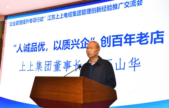 中機企協(xié)孫伯淮理事長在總結講話中,用了“上善若水”“大道至簡”2個詞以及“創(chuàng)新”、“質量”“規(guī)?!薄把b備”“人才”“管理”“品牌”7個門檻高度總結了上上發(fā)展之道和競爭優(yōu)勢。同時,孫理事長強調,國際一流的管理造就世界一流的企業(yè),管理的突破要比技術和產品創(chuàng)新更能創(chuàng)造持久的競爭優(yōu)勢。管理優(yōu)秀的上上電纜不僅造就了自己,還能給眾多行業(yè)企業(yè)帶來楷模意義,從而強有力的推動國家競爭力的提升。丁山華董事長率領上上電纜幾十年如一日,聚焦主業(yè)、穩(wěn)扎穩(wěn)打的戰(zhàn)略定力,以及博大的胸懷,毫無保留的無私分享管理經驗,是當之無愧的中國優(yōu)秀經營管理者,他的示范作用必然會帶動更多的企業(yè)持續(xù)健康發(fā)展,促進我國早日實現(xiàn)制造強國夢。