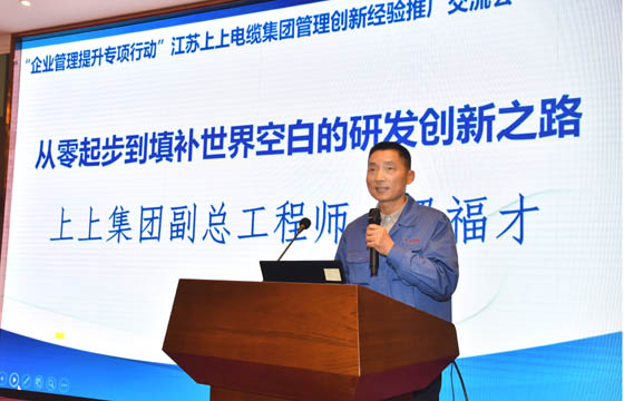 交流會上,上上電纜董事長丁山華圍繞“專注、專業(yè)、人誠、品優(yōu)、創(chuàng)新”等五個方面分享了上上跨越半個世紀的發(fā)展實踐與探索經驗。副總經理朱洪祥、副總工程師、核電辦主任梁福才、低壓分廠廠長葛秋平分別從質量管理績效模式、研發(fā)管理創(chuàng)新、高效率運營管理之道三個維度作了專題報告,對上上管理創(chuàng)新經驗作了詳盡分享。兩位特邀專家圍繞工業(yè)互聯(lián)與標識體系、合規(guī)管理體系的建設與提升主題作了精彩演講。